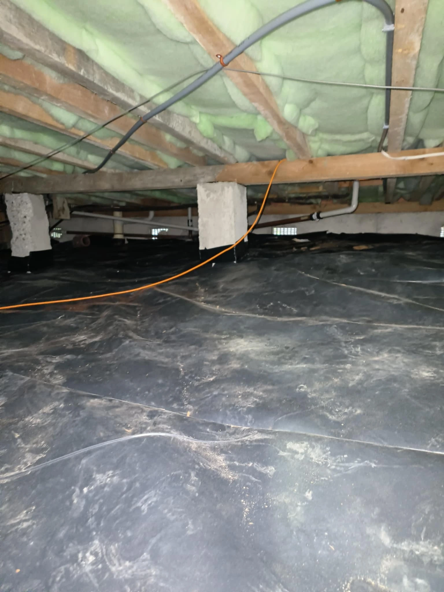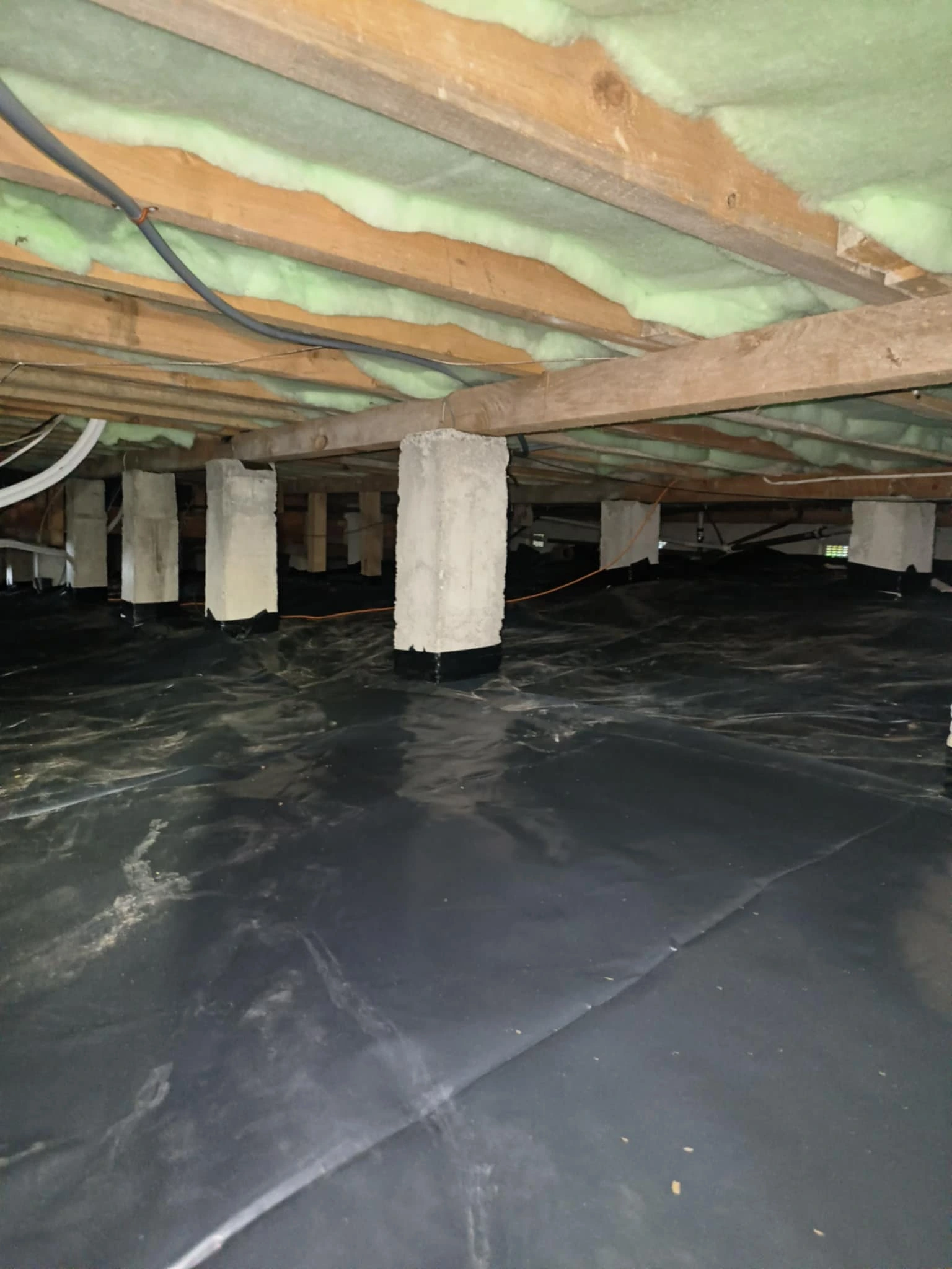 The installation process involved laying the polythene sheeting carefully across the entire subfloor area, ensuring full coverage with no gaps. Overlaps between sheets were sealed to prevent any moisture from penetrating through the joins. The barrier was fitted snugly around piles and other subfloor structures to ensure a complete, airtight seal against ground moisture. Our team worked efficiently and thoroughly, completing the job to a high standard with minimal disruption to the client.